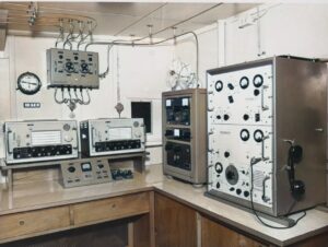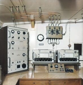 Nella foto 3 verranno descritti solo gli apparati che nella foto sopra non erano visibili; l’apparato più vicino al ricevitore di destra è il T-300-OC della MARCONI ITALIANA, era il TX radiotelegrafico principale per il traffico in Onde Corte a fianco l’ RTX radiotelefonico della IRME modello SAGITTARIO per le cominicazione RTF in modulazione di ampiezza nella banda delle Onde Medio-Corte da 1,6 a 4 MHz e delle Onde Corte da 4 a 22 MHz.