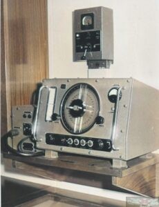 In foto 5 il radiogoniometro della MARCONI ITALIANA modello RDG Marconi 3-3-S-3 con a fianco il suo alimentatore, sopra installato a parete l’interuttore per l’alimentazione a batteria in caso di emergenza.