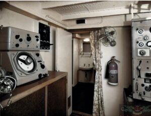 Nella foto 2 una panoramica della modernissima stazione radio di cui era dotata la nave in grado di poter comunicare sia in Onde Medie che Corte da ogni oceano del mondo, negli scatti successivi verranno descritti i vari apparati mentre essendo visibile solo in questa foto, il primo apparato sulla sinistra, è un radiogoniometro MARCONI modello DFM3/R3.