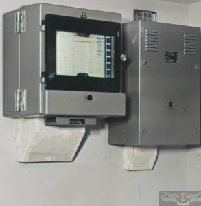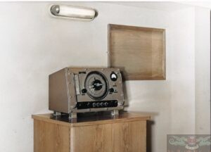 Ecoscandaglio della MARCONI MARINE Inglese (MiMCo.) modello SEAGRAPH III a carta chimica, sulla sinistra l’indicatore mentre sulla destra il trasmettitore/ricevitore che inviava gli impulsi verso il fondo marino e riceveva quelli ritrasmessi dal fondale tramite un trasduttore posto sulla chiglia della nave.