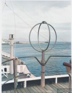 Sopra l’antenna del radiogoniometro installata sul ponte più alto della nave (Controplancia).