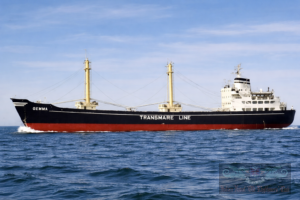 Foto 1 (questa immagine della motonave è stata rielaborata da un software di I.A. usando una vecchia foto molto rovinata che sembra essere l’ unica immagine reperibile della “GEMMA”)