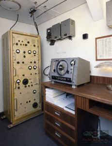 l’ANTARES poteva trasmettere su 5 frequenze quarzate tra le quali la 2182 kHz. Sul cielo della stazione radio si possono notare le due linee separate in uscita dai trasmettitori.